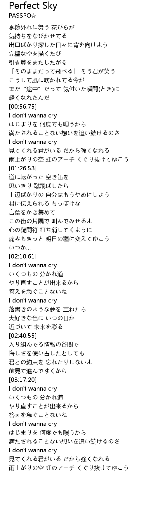 | [00:57.22] | I don' t wanna cry |