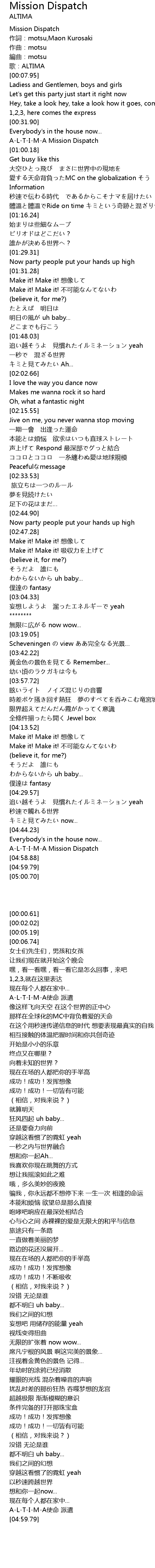 | [00:57.03] | A-L-T-I-M-A使命 派遣 |