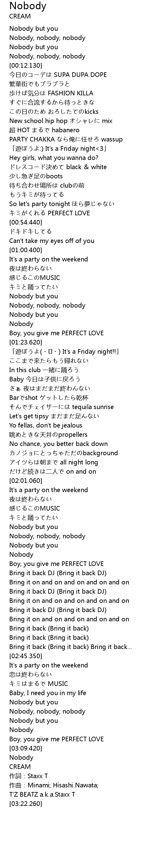 | [02:14.940] | Nobody, nobody, nobody |