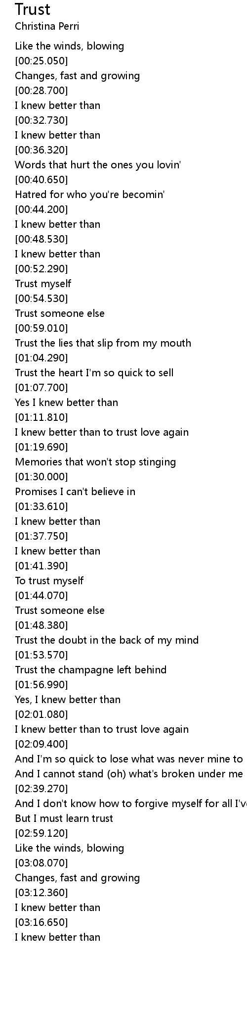 But I must learn trust |