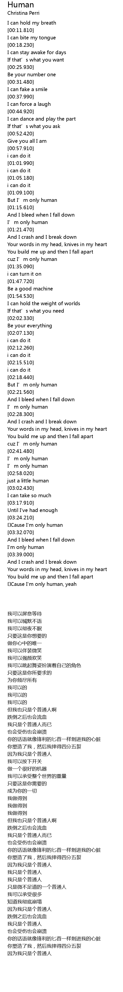 | [03:29.640] | Cause I' m only human |