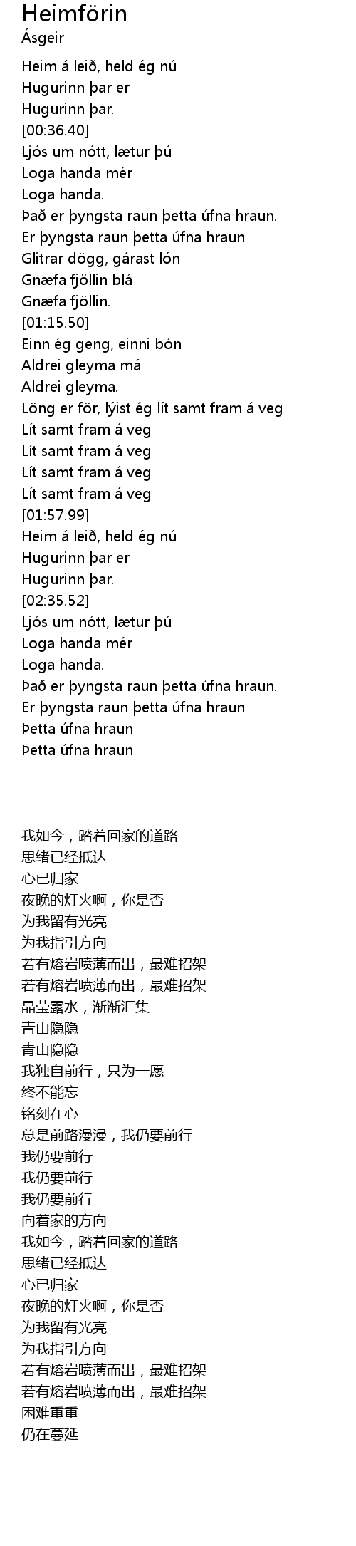 | [02:58.33] | Er þyngsta raun þetta úfna hraun |