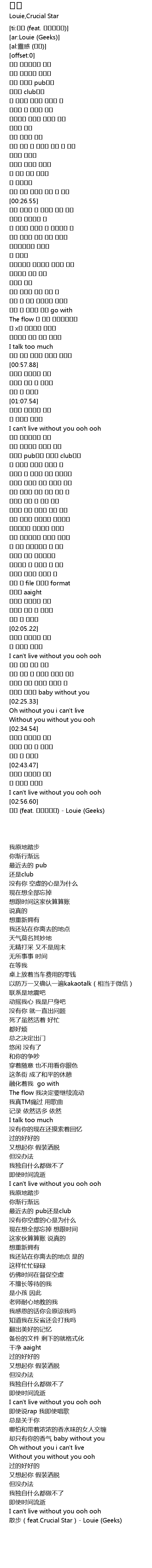 | [02:57.28] | 散步(feat.Crucial Star)- Louie (Geeks) |