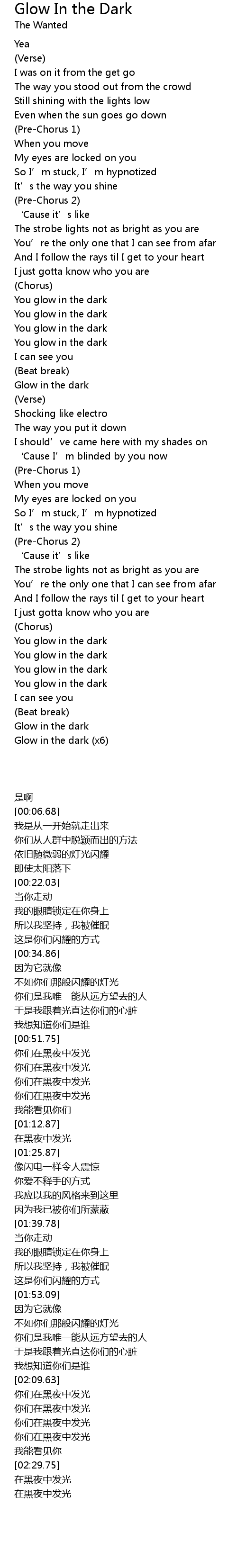 | [02:45.77] | Glow in the dark x6 |