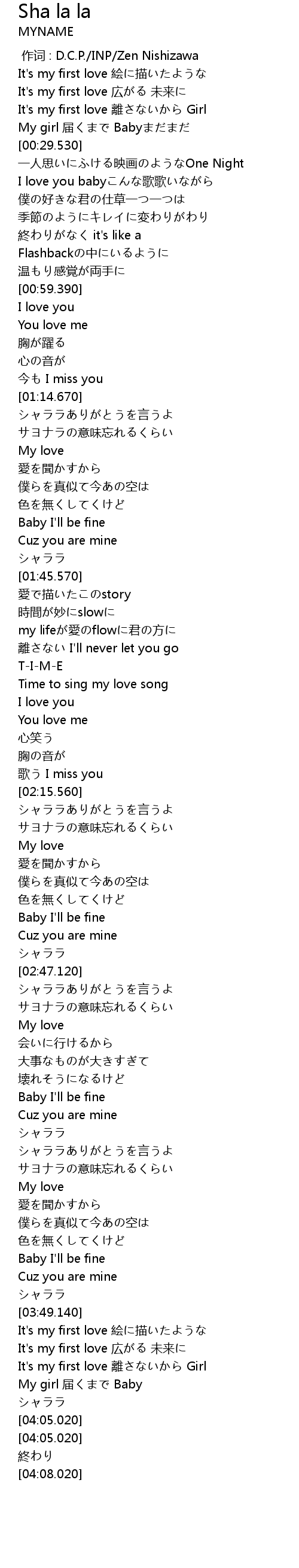| [00:00.00] | zuò cí : D. C. P. INP Zen Nishizawa |