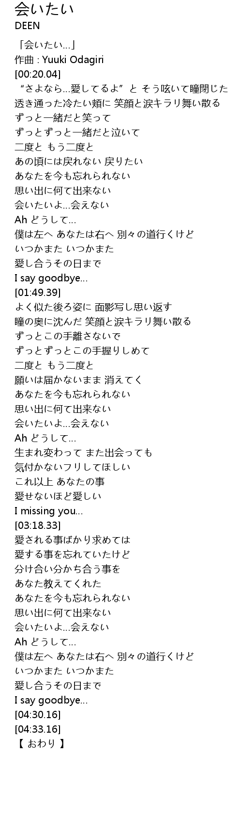 | [03:54.20] | 会いたいよ…会えない |