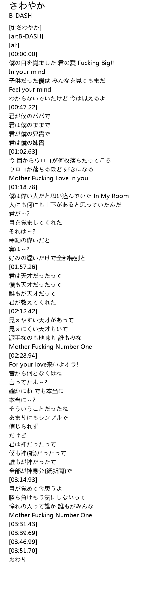 | [03:27.93] | Mother Fucking Number One |