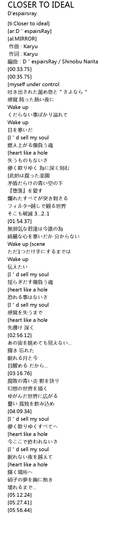 | [00:31.75] | bian qu: D espairsRay Shinobu Narita |