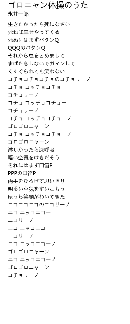 | 歌曲 | ゴロニャン体操のうた |