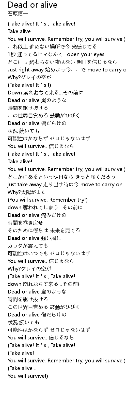 | [04:19.72] | (Take alive! It's , Take alive! |