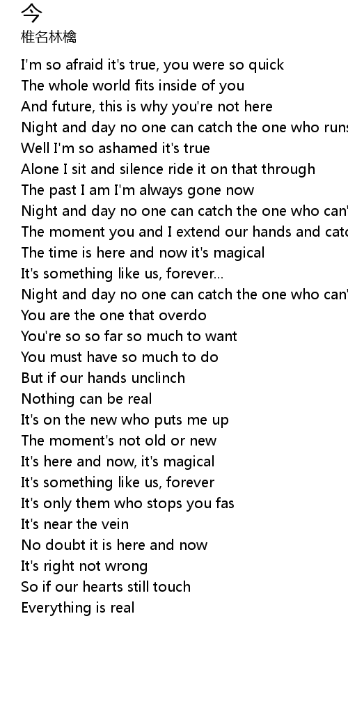 | [00:01.10] | I'm so afraid it's true, you were so quick |