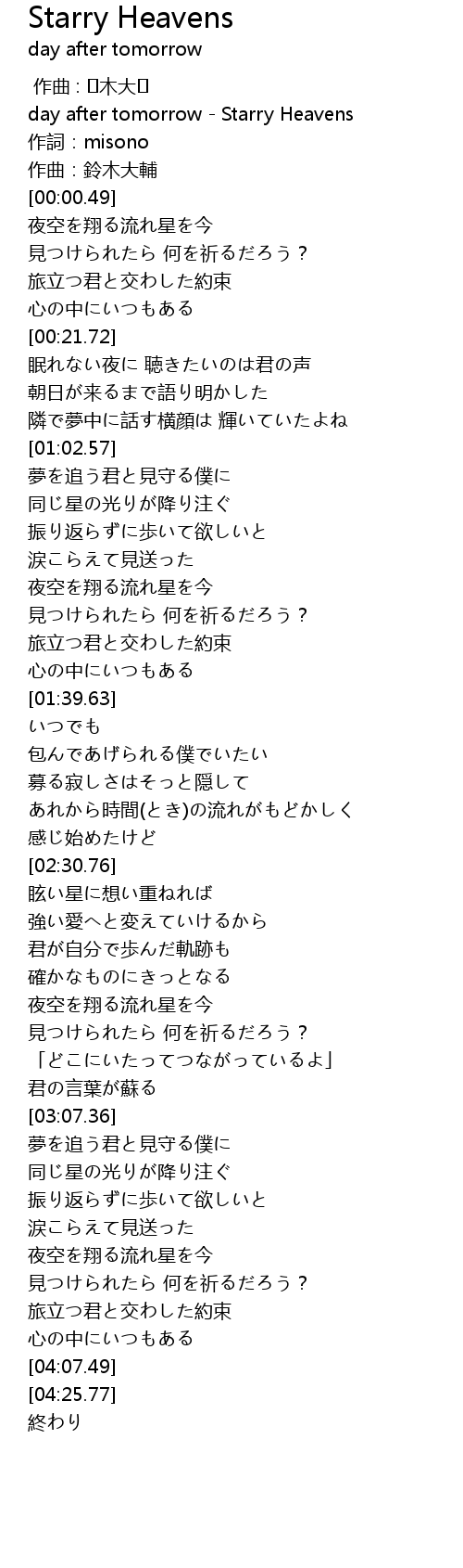 | [00:00.00] | day after tomorrow - Starry Heavens |