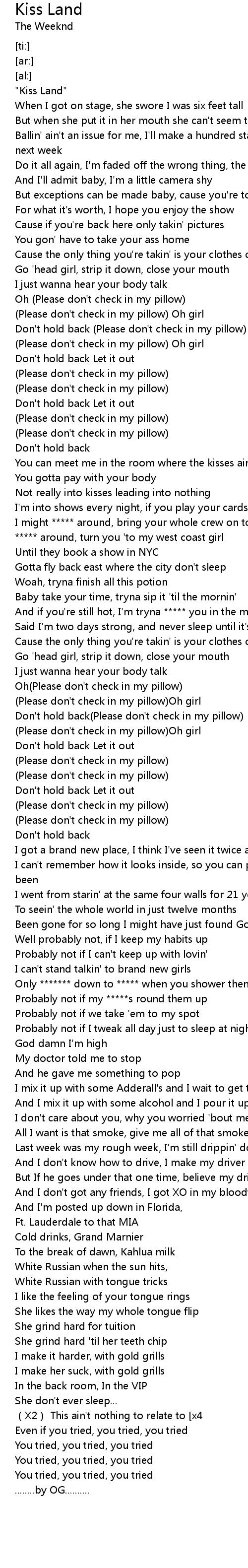 | [00:00.00] | "Kiss Land" |