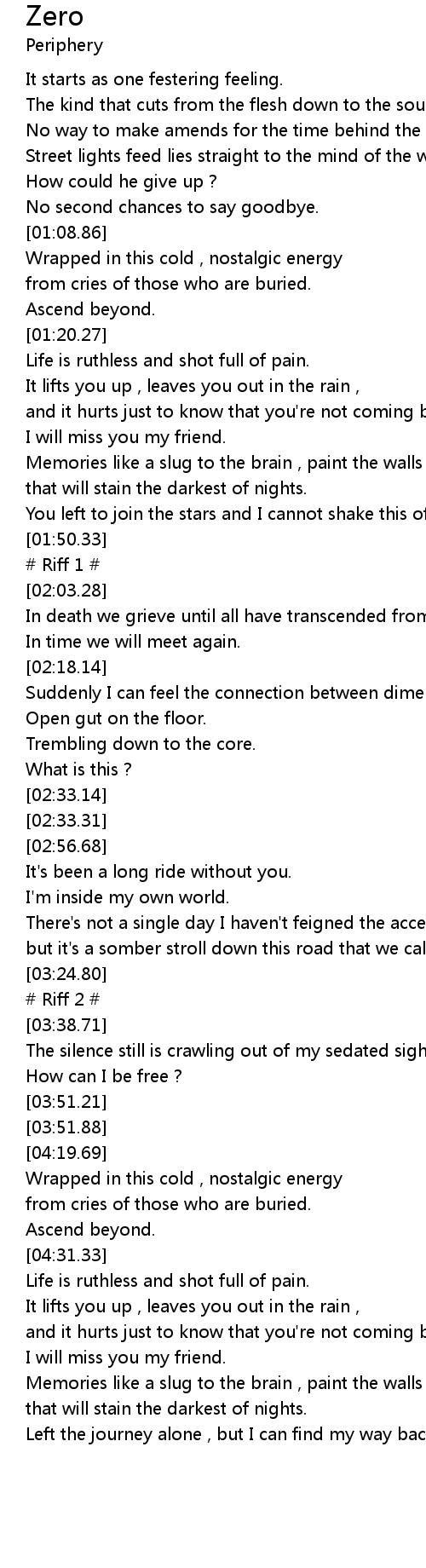 | [01:43.56] | You left to join the stars and I cannot shake this off my chest. |
