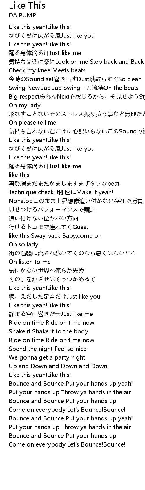 | [00:19.24] | Like this yeah! Like this! |