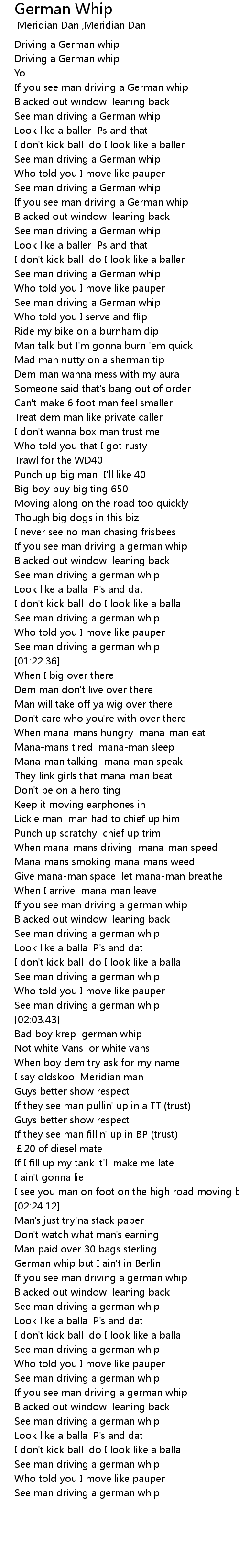 | [01:43.01] | When mana-mans driving mana-man speed |