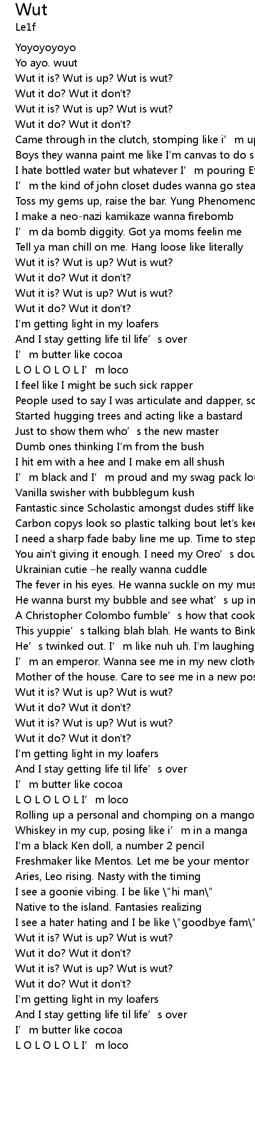 | Wut it is? Wut is up? Wut is wut? | |