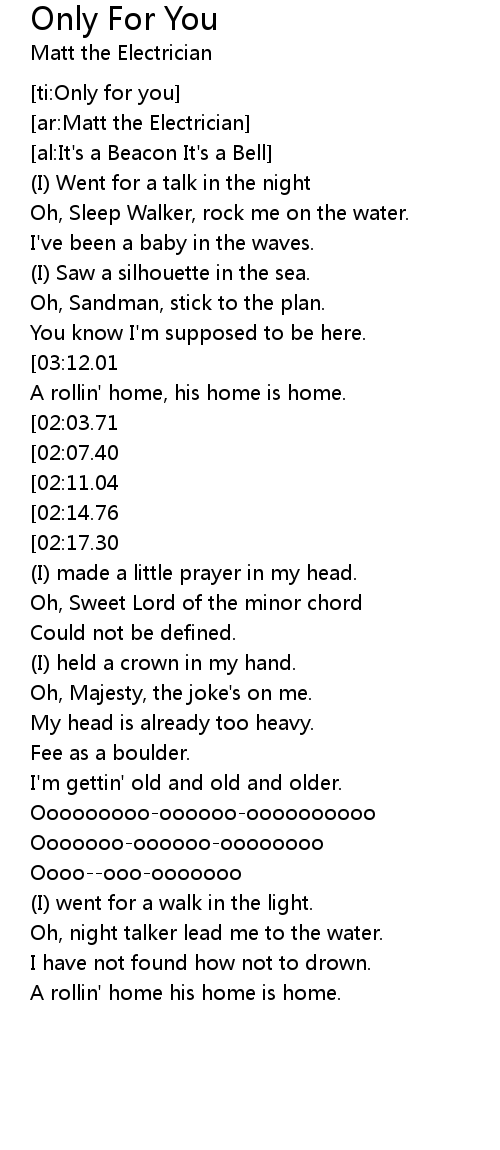 [01:05.06][02:17.30][03:37.64] Only for you.