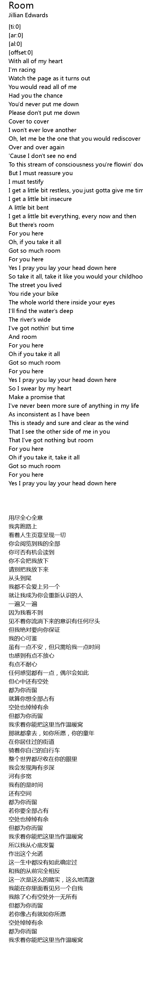 That I've got nothing but room |