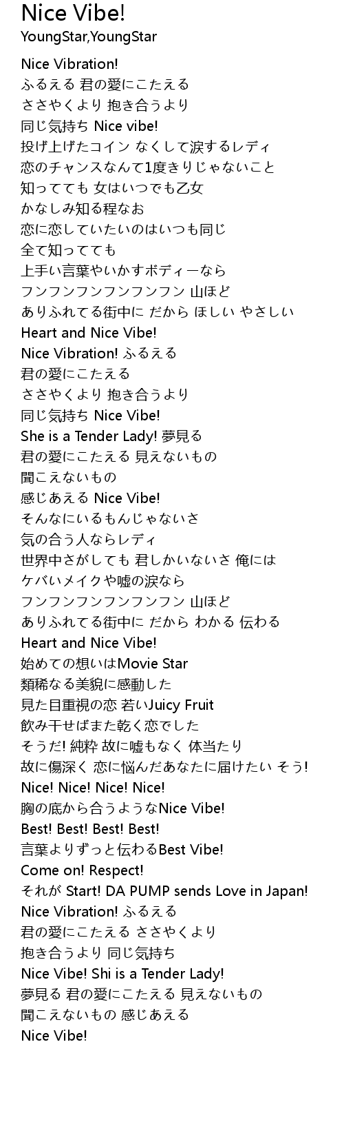 | [03:25.873] | 言葉よりずっと伝わるBest Vibe! |