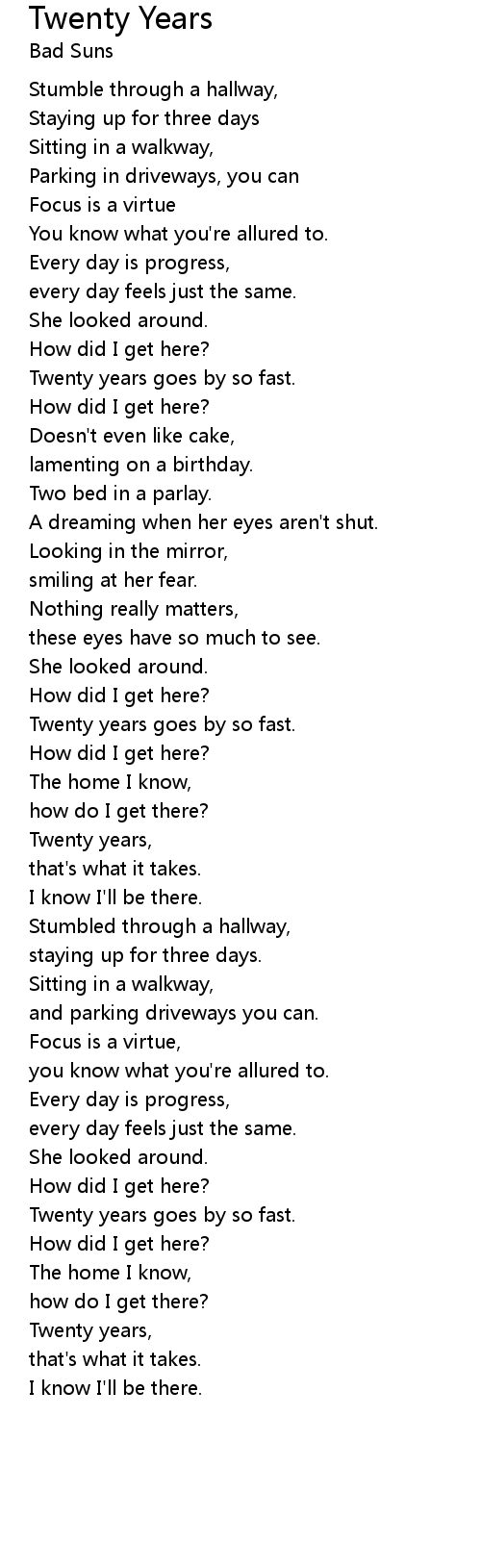 | Twenty years, | |