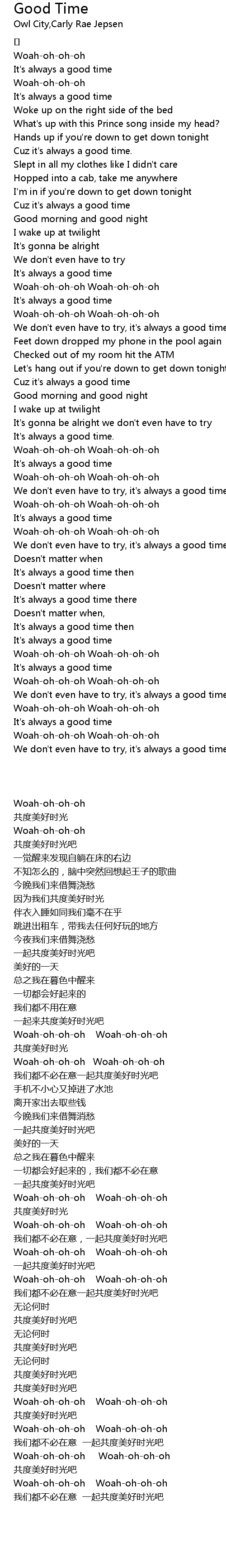 | [01:37.64] | Cuz it' s always a good time |
