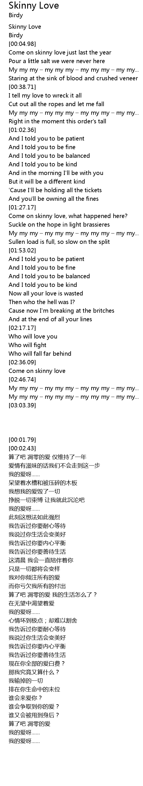 | [00:01.79] | Skinny Love |