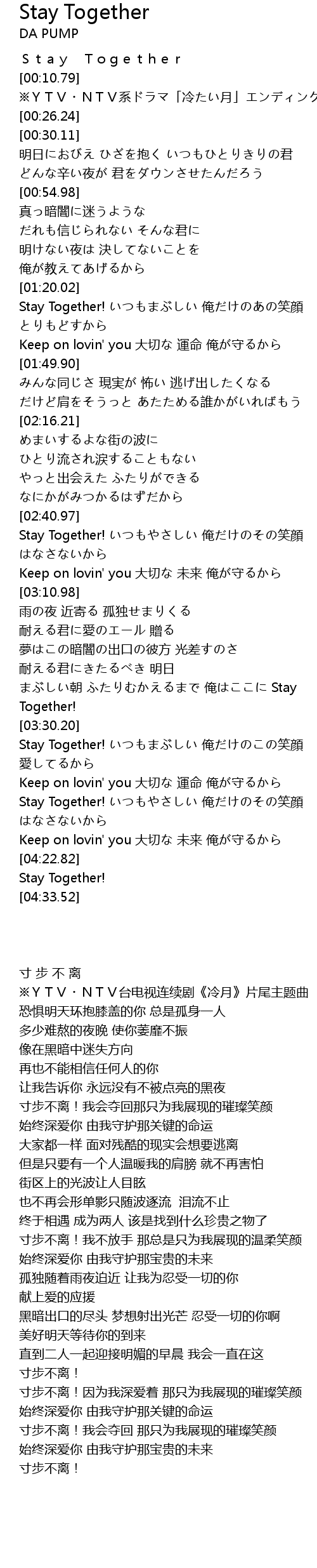 | [03:30.22] | Stay Together! an xiao yan ai |
