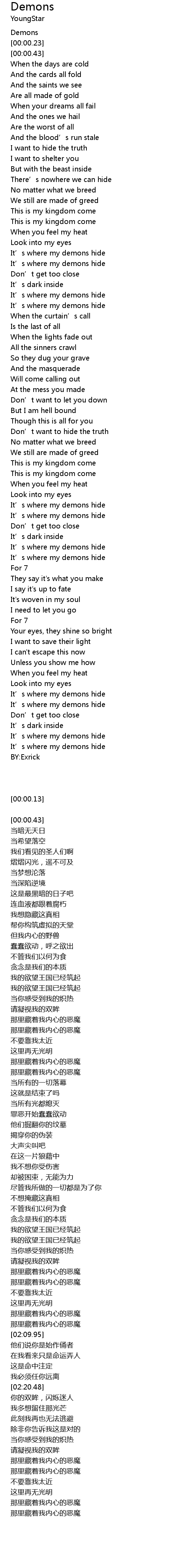 | [00:00.13] | Demons |