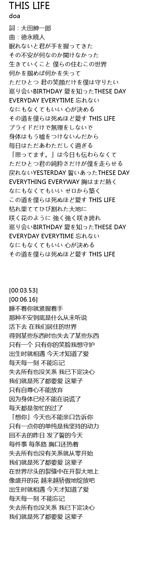 | [03:07.61] | dào pú sǐ ài THIS LIFE |