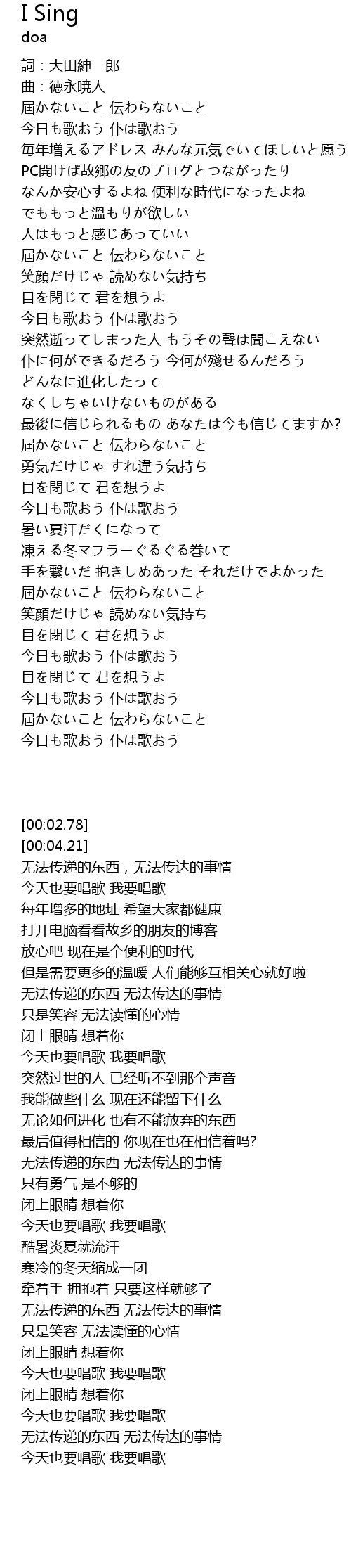 | [02:53.47] | 今天也要唱歌 我要唱歌 |