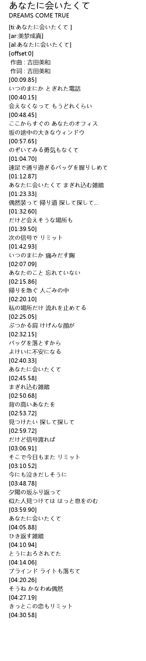 | [04:03.58] | あなたに会いたくて |
