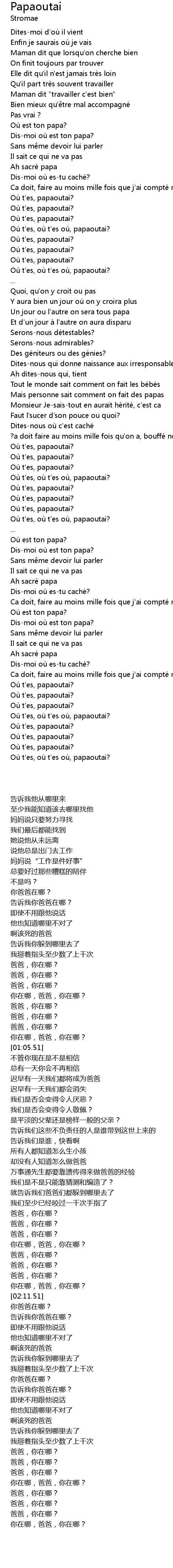 | [03:14.46] | Où t'es, où t'es où, papaoutai? |
