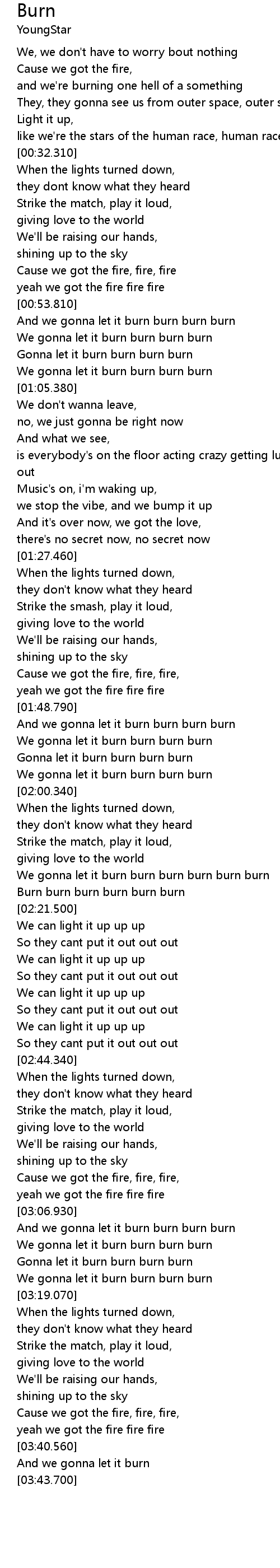 [02:11.630] We gonna let it burn burn burn burn burn burn