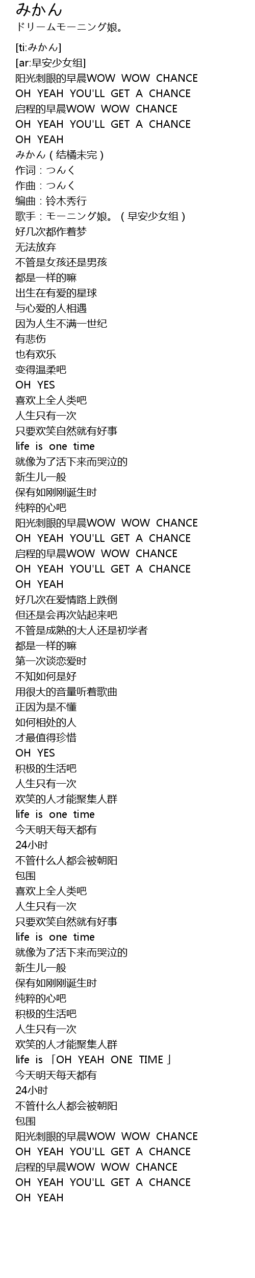 | [04:01.672] | yang guang ci yan de zao chen WOW WOW CHANCE |