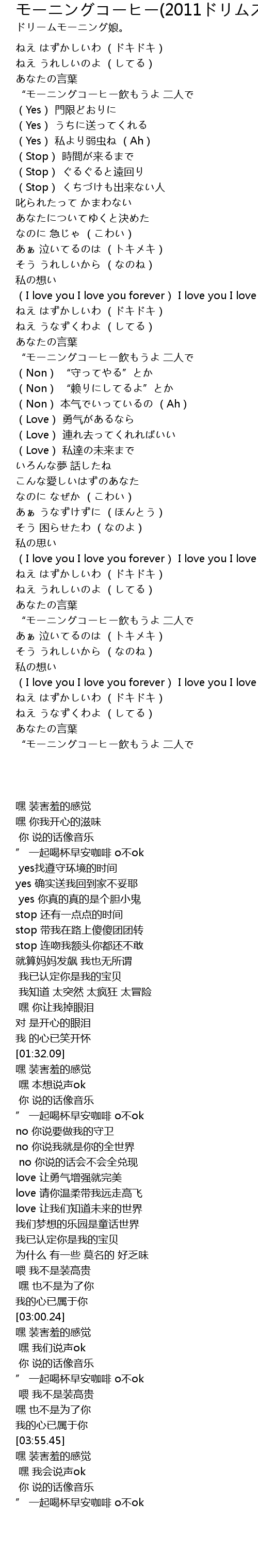 | [03:15.81] | “モーニングコーヒー飲もうよ 二人で |