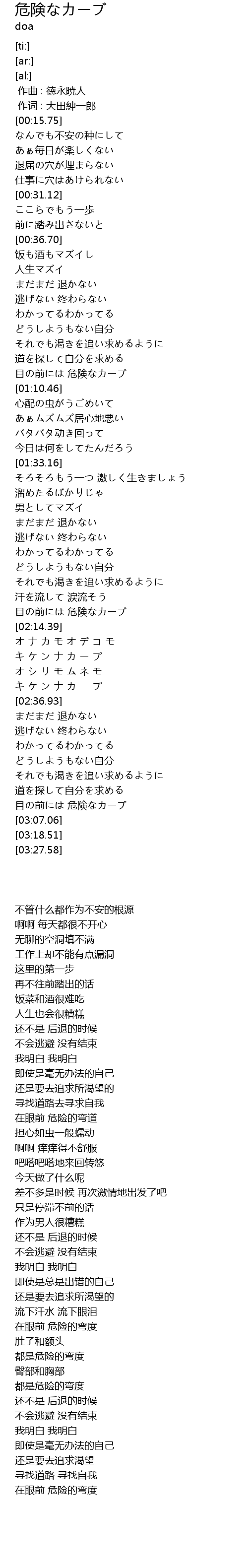 | [01:34.93] | そろそろもう一つ 激しく生きましょう |