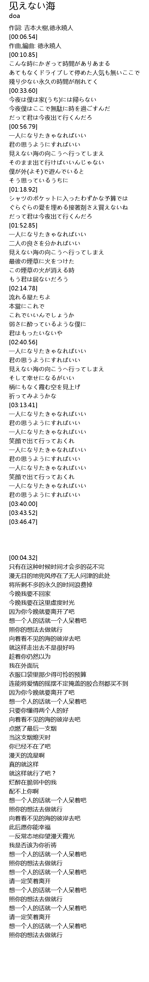 | [01:58.92] | 向着看不见的海的彼岸去吧 |