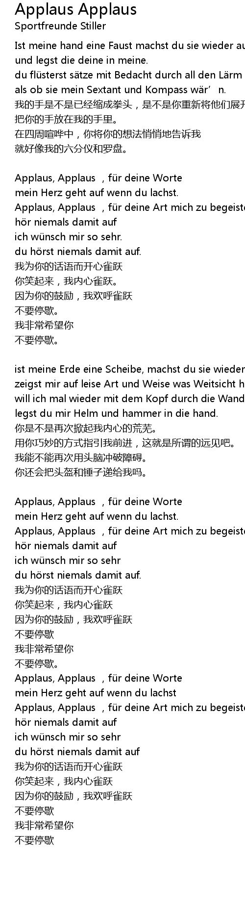 | Applaus, Applaus , fü r deine Worte | |