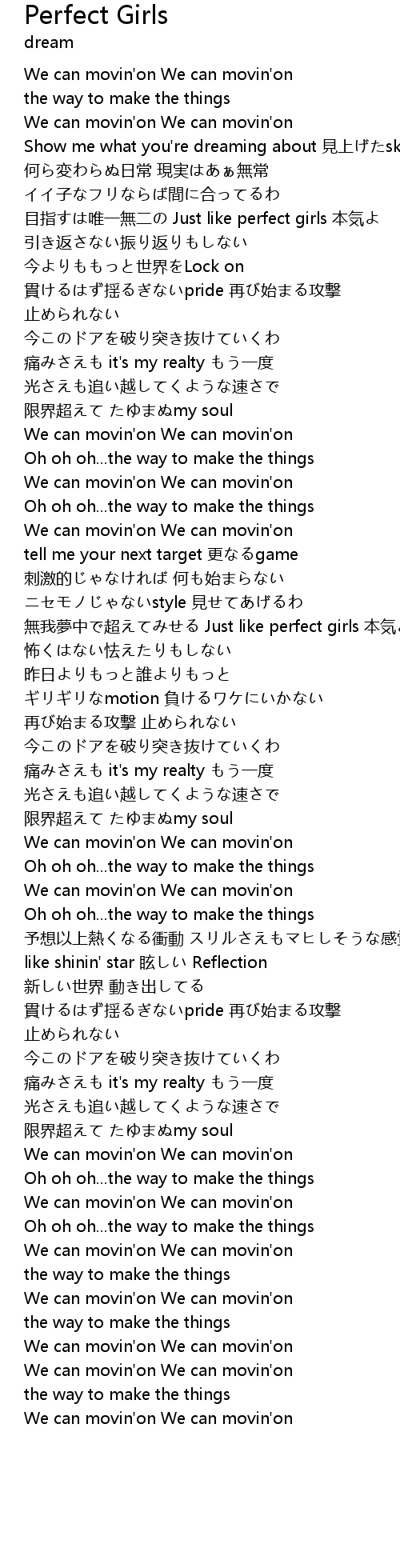 | 無我夢中で超えてみせる Just like perfect girls 本気よ | |
