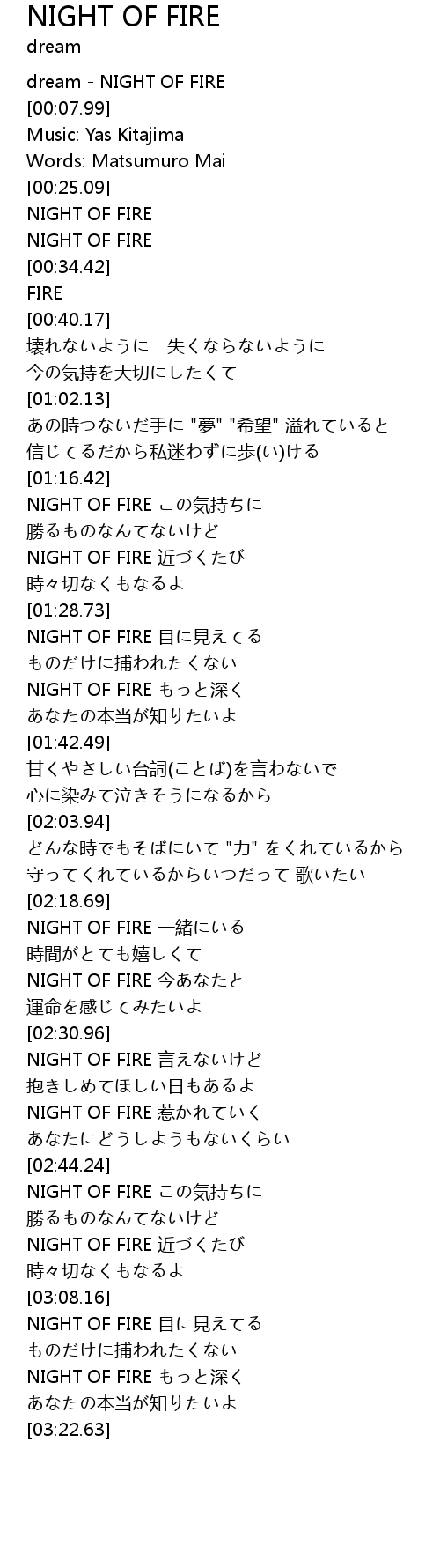 | [00:00.77] | dream NIGHT OF FIRE |