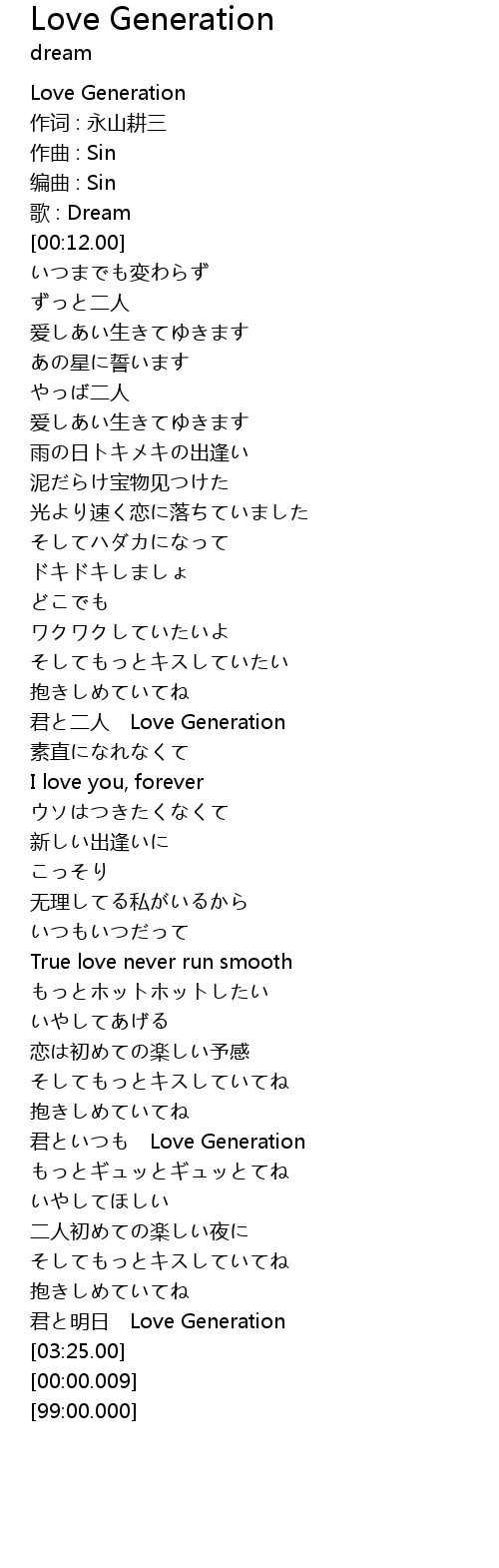 | [02:34.50] | 君といつも Love Generation |