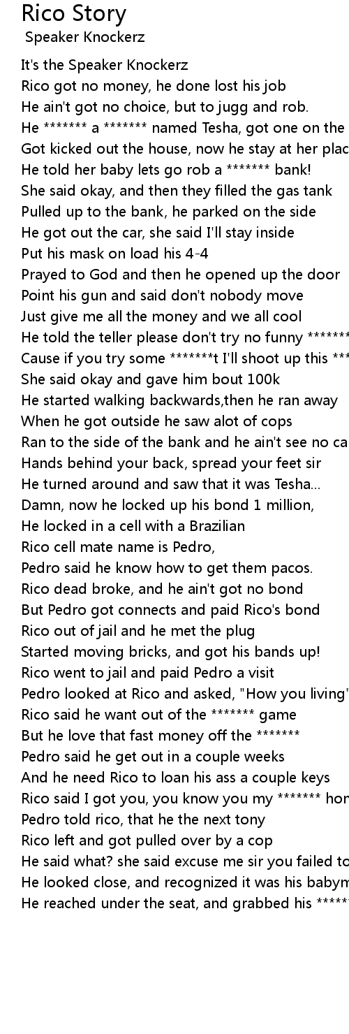 Rico got no money, he done lost his job |