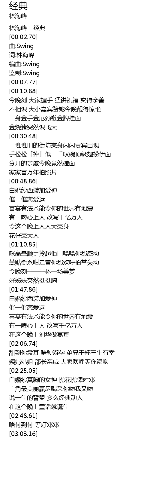| [00:01.31] | 林海峰 - 经典 |