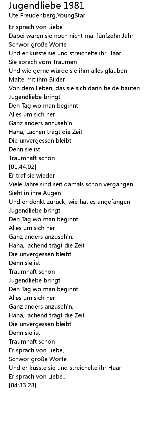 | [00:15.04] | Dabei waren sie noch nicht mal fü nfzehn Jahr' |