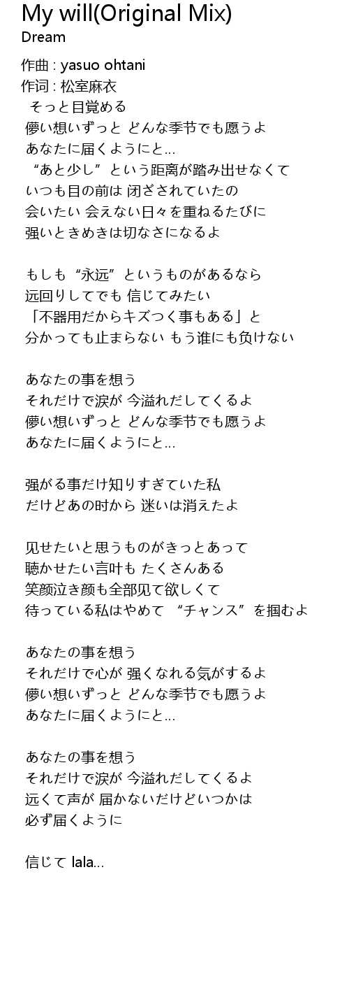 | 作词 : 松室麻衣 | |