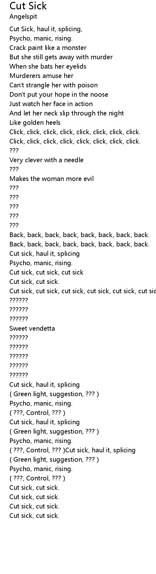 Cut sick, cut sick, cut sick, cut sick, cut sick, cut sick, cut sick. |