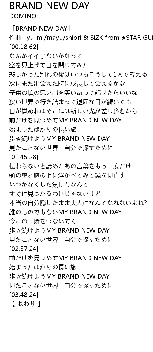 | [00:01.62] | 「BRAND NEW DAY」 |