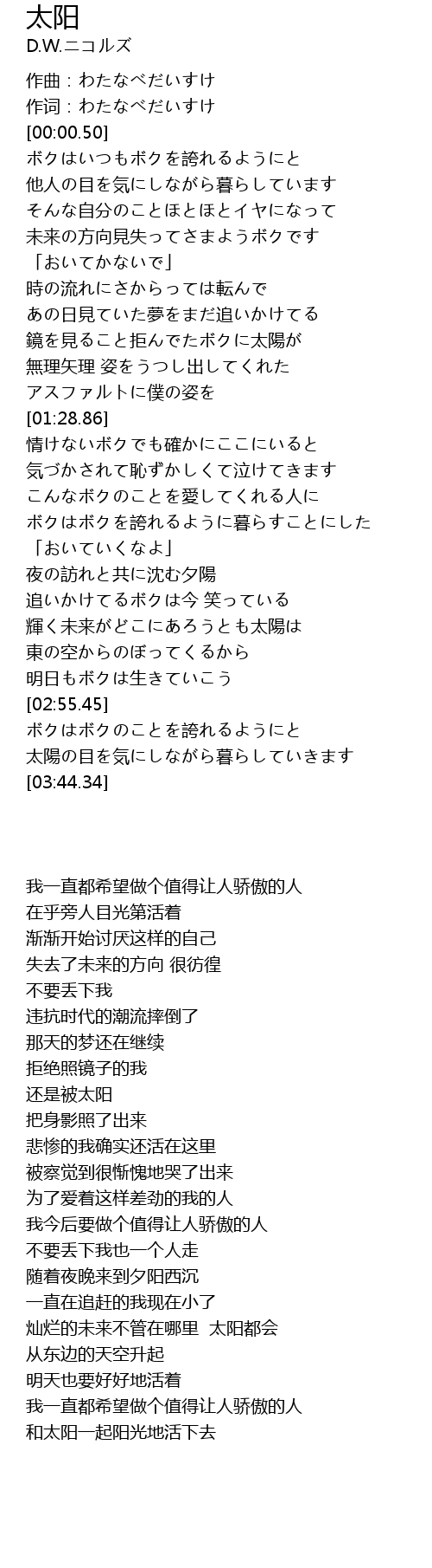 | [03:34.07] | 和太阳一起阳光地活下去 |