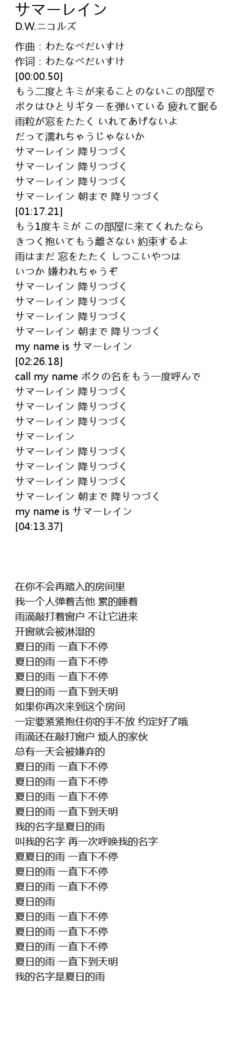 | [04:00.93] | サマーレイン 朝まで 降りつづく |